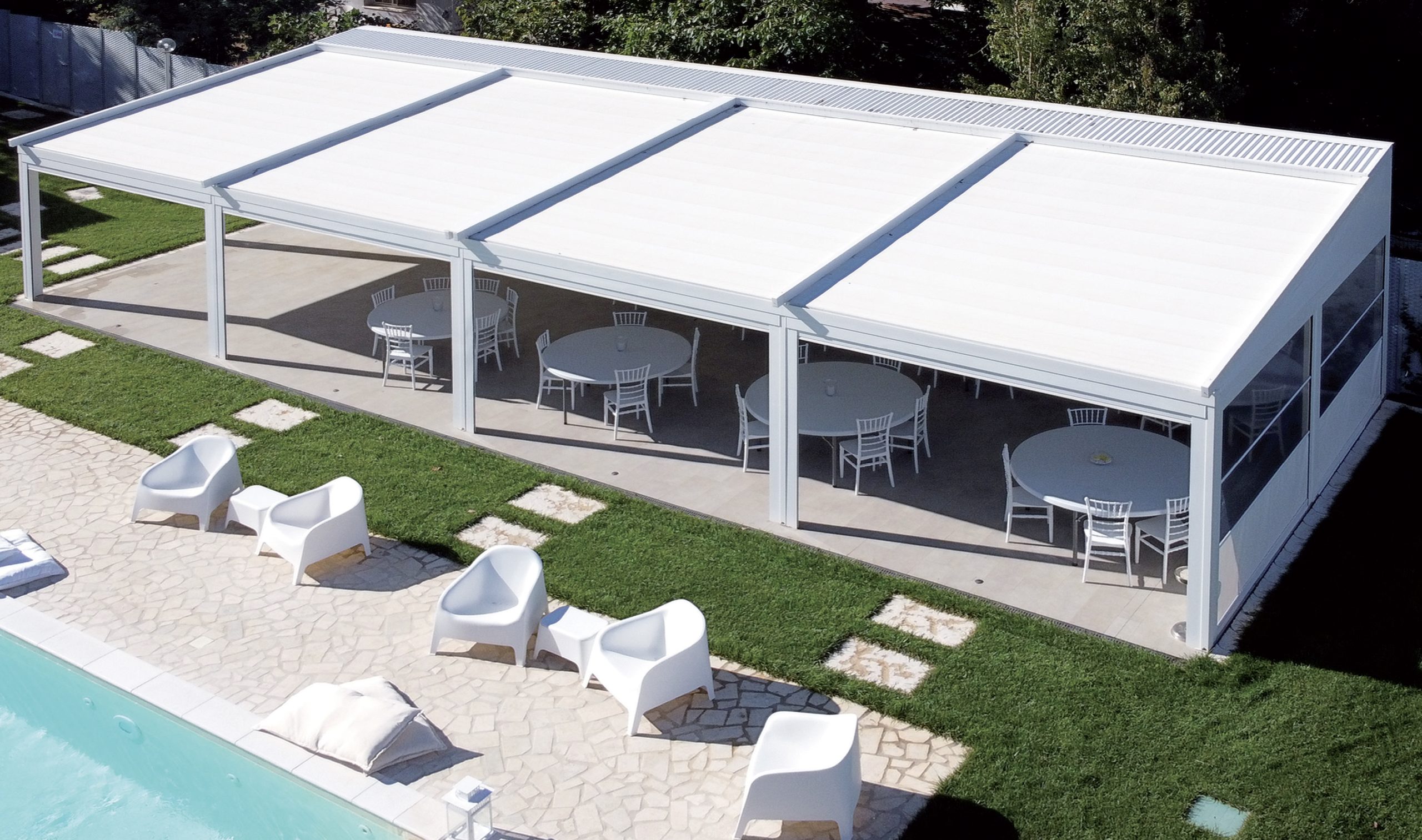 Esplora l'armonia tra natura e comfort con le nostre pergole bioclimatiche Horus. Queste pergole all'avanguardia ti permettono di godere al massimo del tuo spazio esterno, regolando la luce, la temperatura e la ventilazione in base alle tue esigenze.